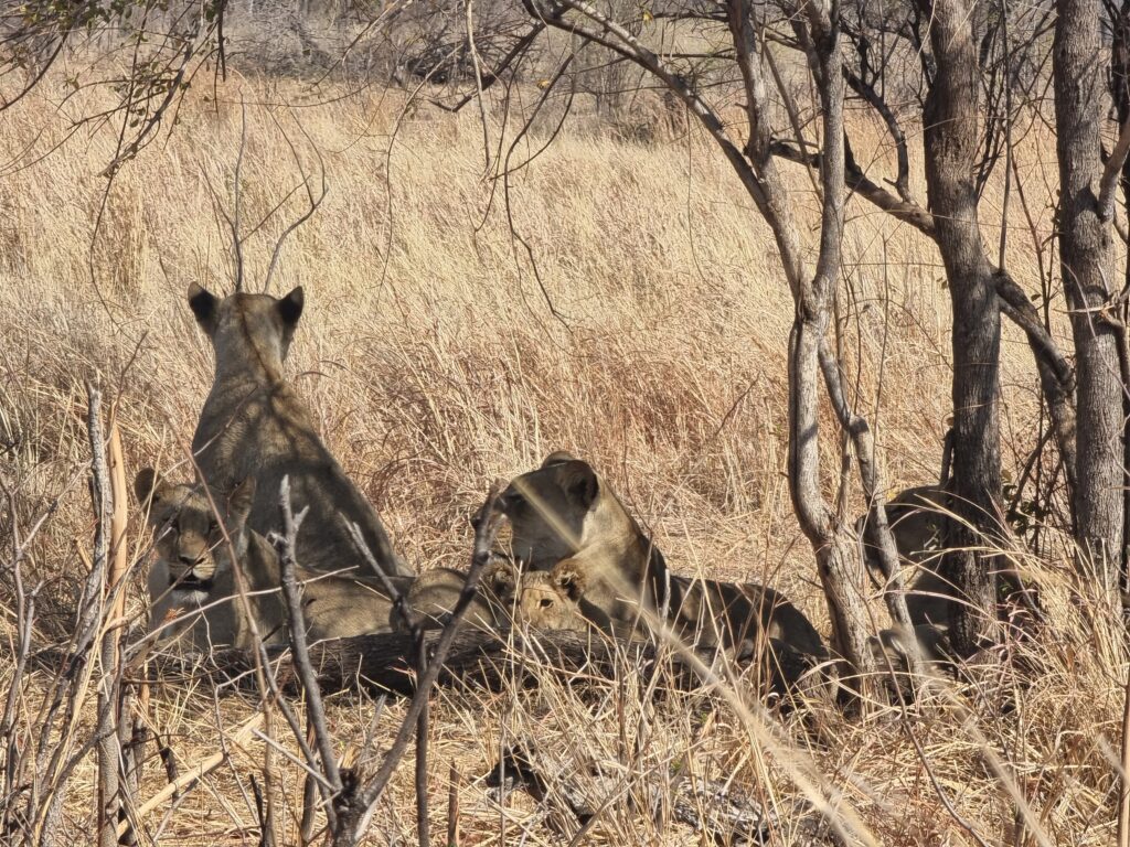 • Ngweshia pan: tiene una área de picnic vallada y con baños, muy bien cuidada. Alrededores es una zona que frecuentan leones, vimos una familia entera con siete crías, dos machos y cuatro hembras. Pero, para llegar hasta allá no fue fácil. Son más de 4 horas de camino des del campamento, con mucha escasez de avistamientos. Pasando por Kennedy 1 y Kennedy 2, zonas que estaban sin agua y sin animales practicamente.